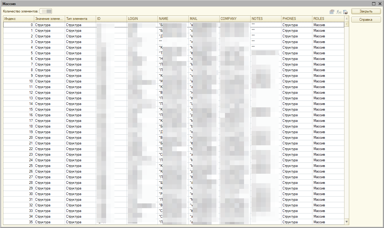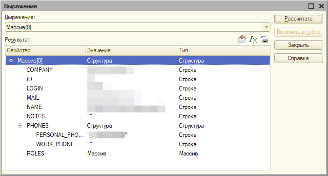 - 1С получает JSON-данные и превращает их в массив структур, каждая структура которого будет содержать данные по конкретному пользователю.