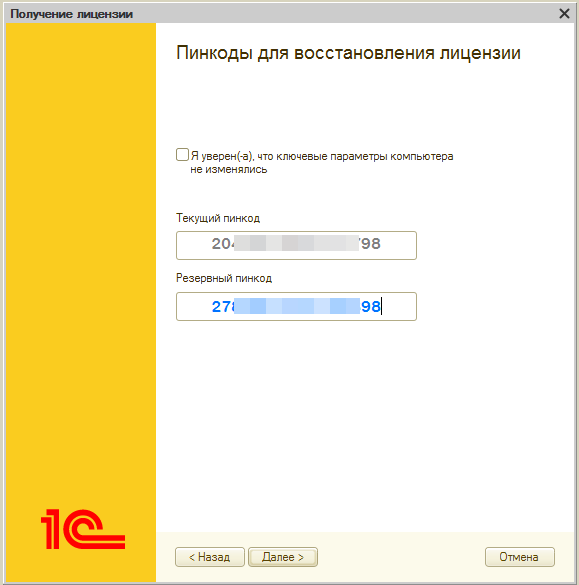- Пин–коды для регистрации. Понадобятся текущий (активный) пин-код с помощью которого зарегистрирована лицензия на старом компьютере и новый (резервный) пин-код для переноса.