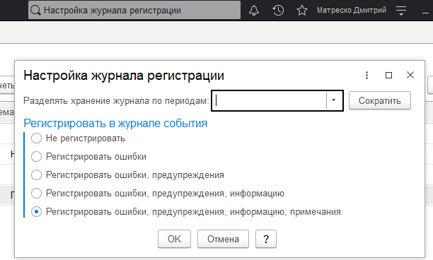 Настроить журнал регистрации