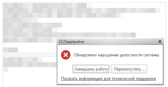 Причины появления ошибки «Обнаружено нарушение целостности системы 1С»