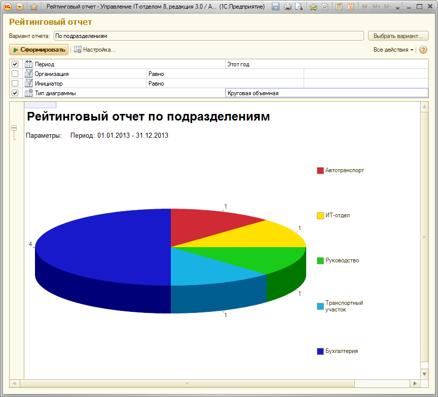 В нашей конфигурации появился прекрасный механизм диаграммного анализа поступивших заявок!