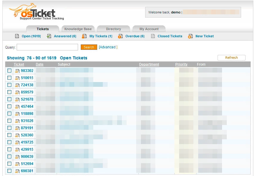 OsTicket – следующая, отчасти бесплатная система учета обращений клиентов, которая начинает набирать обороты за счет своей простоты. Программа поставляется бесплатно с обрезанным функционалом возможностей, но при этом имеет открытый исходных код. При использовании бесплатной версии будет доступна только интеграция с e-mail поддержкой, а остальные функции будут закрыты. Поэтому если не хочется платить, придется дорабатывать собственными силами необходимый функционал. Рассмотрим минусы данного решения: