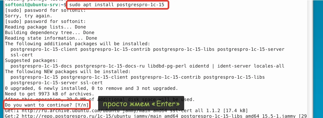 sudo apt-get install postgrespro-1c-15