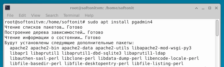 3. Обновляем список пакетов и устанавливаем pgAdmin4:sudo apt update
