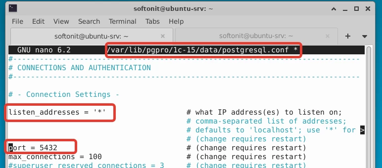 sudo nano /var/lib/pgpro/1c-15/data/postgresql.conf