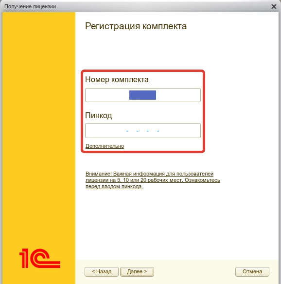При запуске конфигурации, платформа проверит наличие лицензий и, не найдя, предложит произвести активацию.