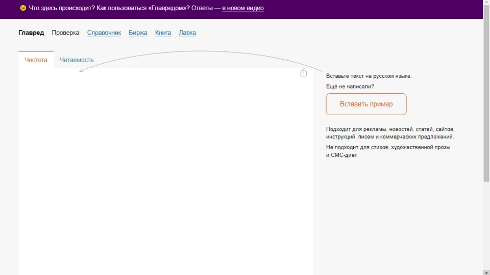 Принцип работы прост: копируешь необходимый текст в специально созданное для этого окно на сайте, алгоритм проанализирует и подсветит слова, которые нуждаются в исправлении. Если сделать клик по слову, то правее окна с текстом появится подсказка с рекомендациями. Исходя из анализа составляется итоговая оценка текста, которая находится в диапазоне от 0 до 10. Где «10» это отличный результат, а «0» соответственно плохой. Хорошим результатом считается оценка выше «7» баллов. Сервис прост и понятен в работе. Скопировал текст, дал время алгоритмам проанализировать его и выполнил рекомендации. При написании текстов, мы с коллегами используем сервис.