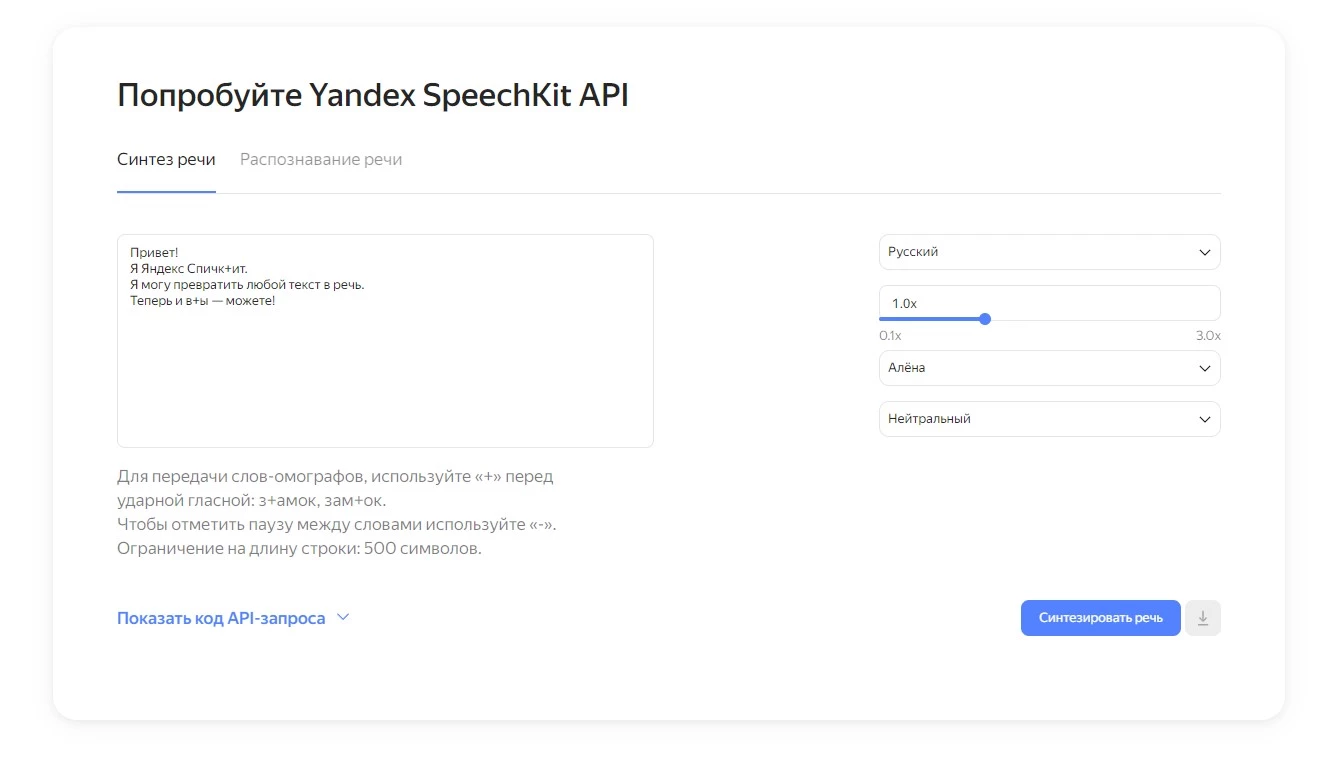 - Yandex SpeechKit (сервис бесплатный и при этом годный)