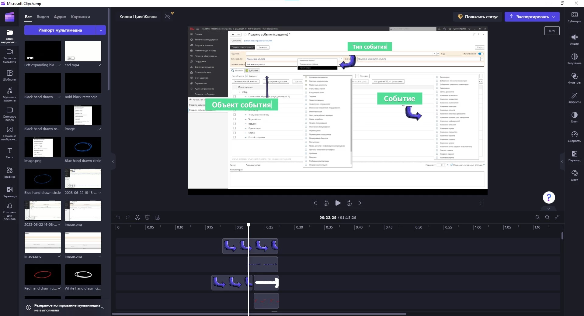 Чтобы добавить визуальные эффекты и сделать видеоролик привлекательным, воспользовались Microsoft Clipchamp. Этот инструмент предоставляется бесплатно в Microsoft Store. На «борту» установлены как бесплатные так и платные эффекты, фильтры и инструменты для редактирования видео. С помощью программы свели видеоматериалы, подставили аудио дорожки, накидали эффектов и декораций.