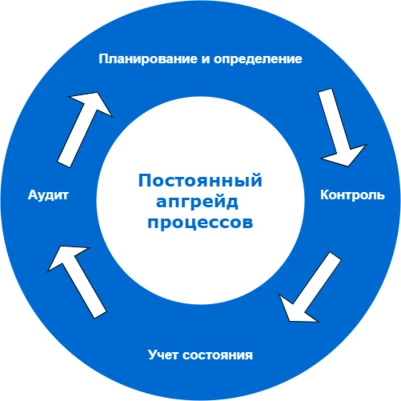 В начале разжевываем и доходчиво объясняем всем участвующим в процессе внедрения, что же это такое CMDB. Этот шаг важен, так как в продолжении работы каждый участник внесет свою лепту в внедрение и дальнейшее использование. Назначенные сотрудники, которые будут ответственными за обращения (инциденты из ITIL) должны быть в курсе изменений, которые производят специалисты ИТ-отдела и обязаны отражать это в информационной базе. Чтобы пришло точечное понимание внедрения CMDB, идеальным решением будет использование схемы «Постоянного апгрейда процессов».