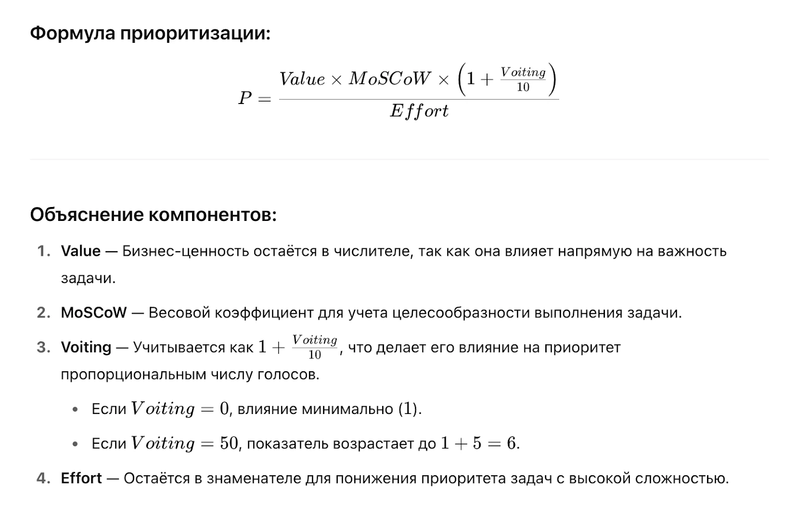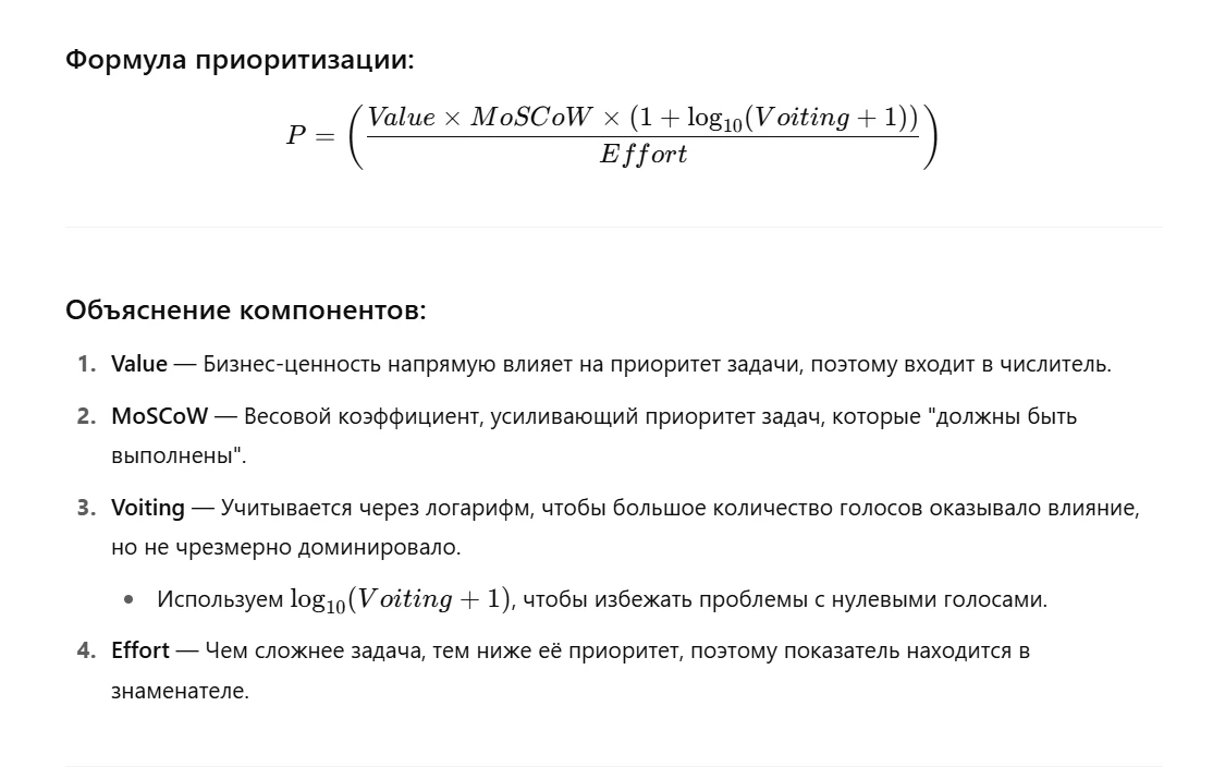 Важно! Effort стоит в знаменателе: чем больше усилий требует задача, тем ниже её приоритет.