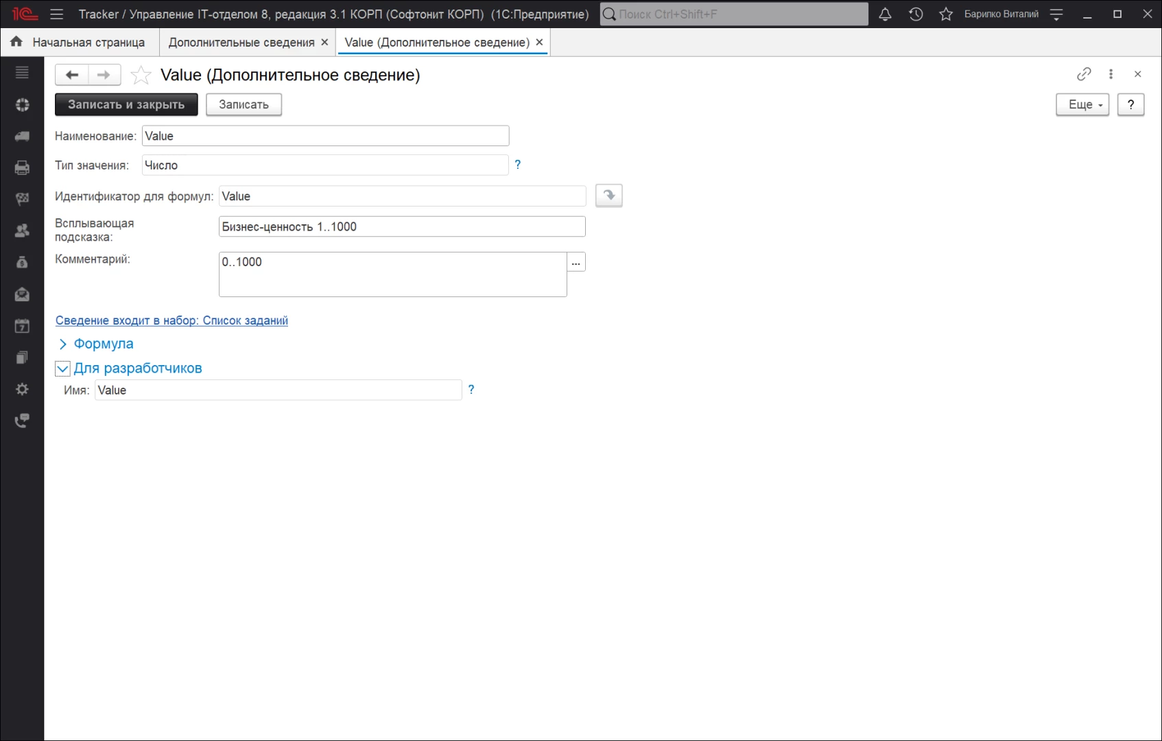 Видим, что объект имеет свою формулу и ссылается на другие реквизиты.