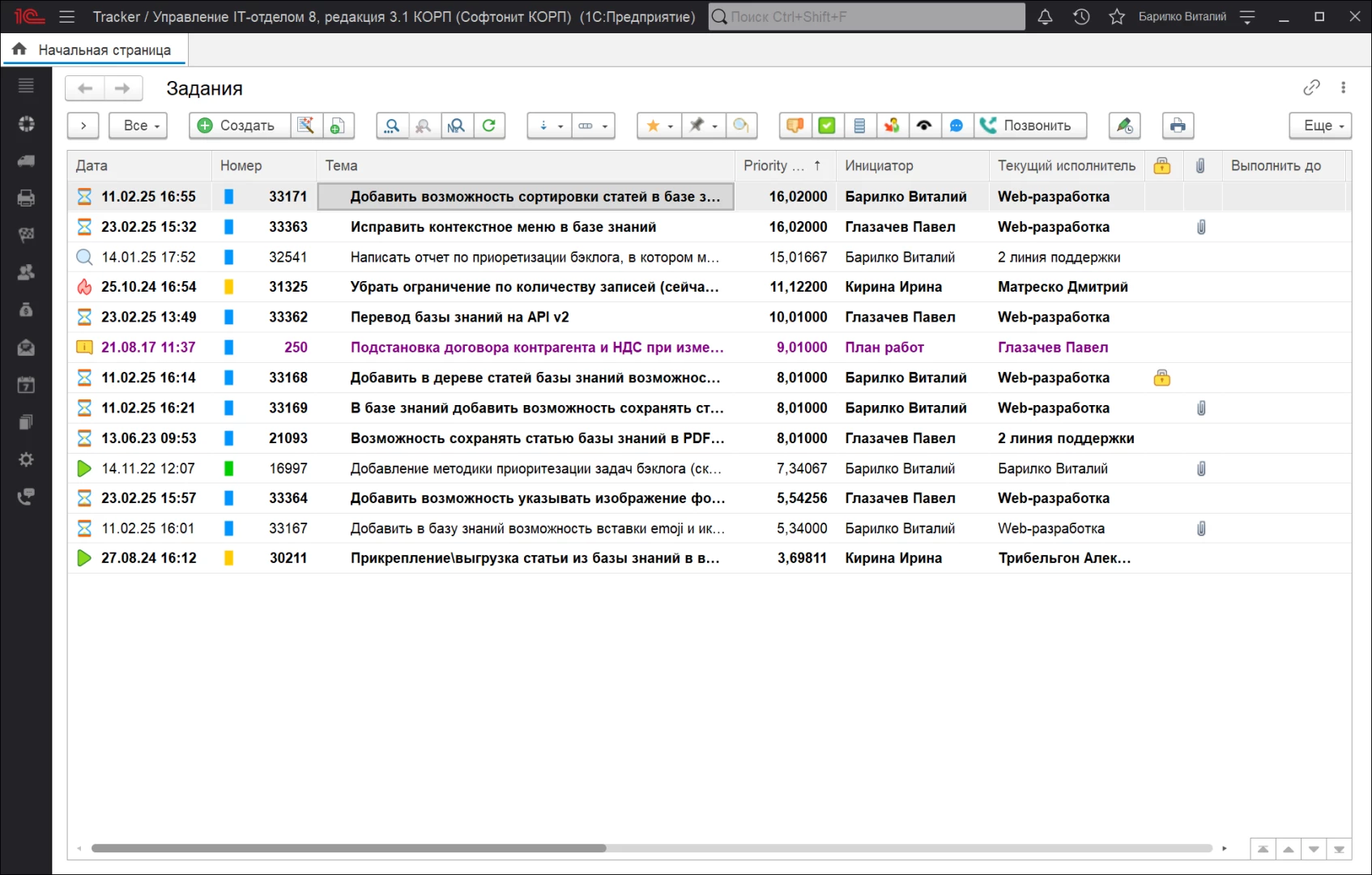 Покажем, как можно реализовать подобную систему приоритизации на примере нашего решения Управление IT‑отделом 8.