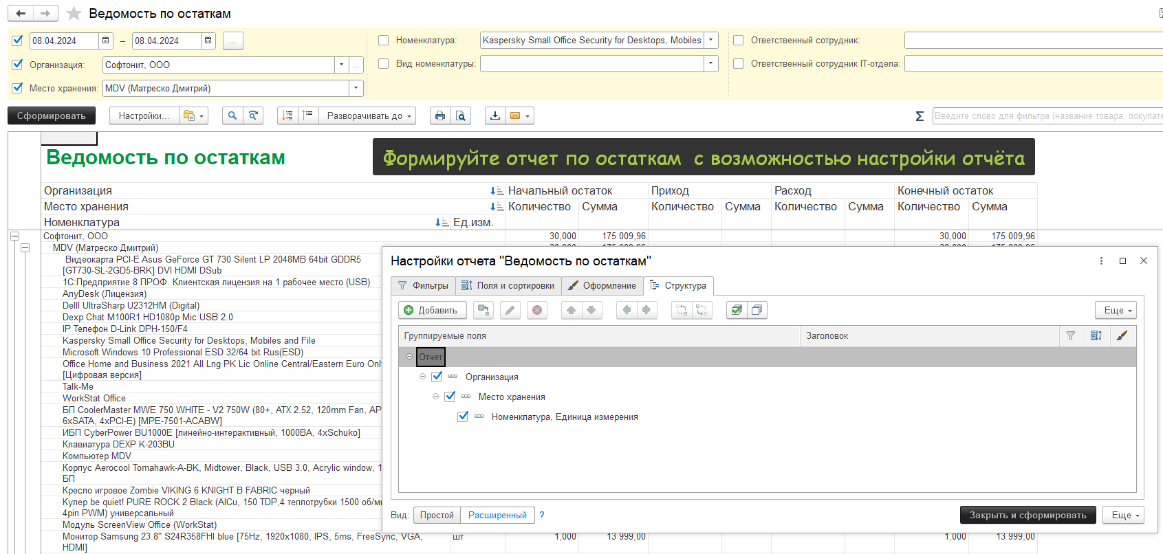 Тогда используйте наше мобильное приложение со встроенным ТСД для формирования документов инвентаризации. Используйте штрихкоды для сканирования и отправляйте результаты в базу данных. Далее формируйте: либо списание, либо поступление.
