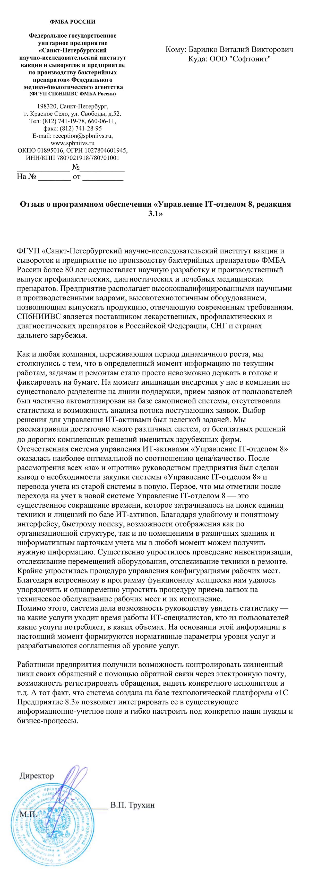 ФГУП СПБНИИВС ФМБА РОССИИ